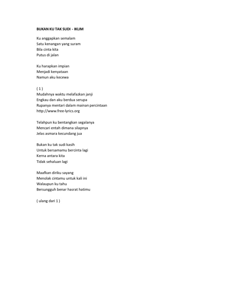 Bukan Ku Tak Sudi Iklim Lirik Youtube