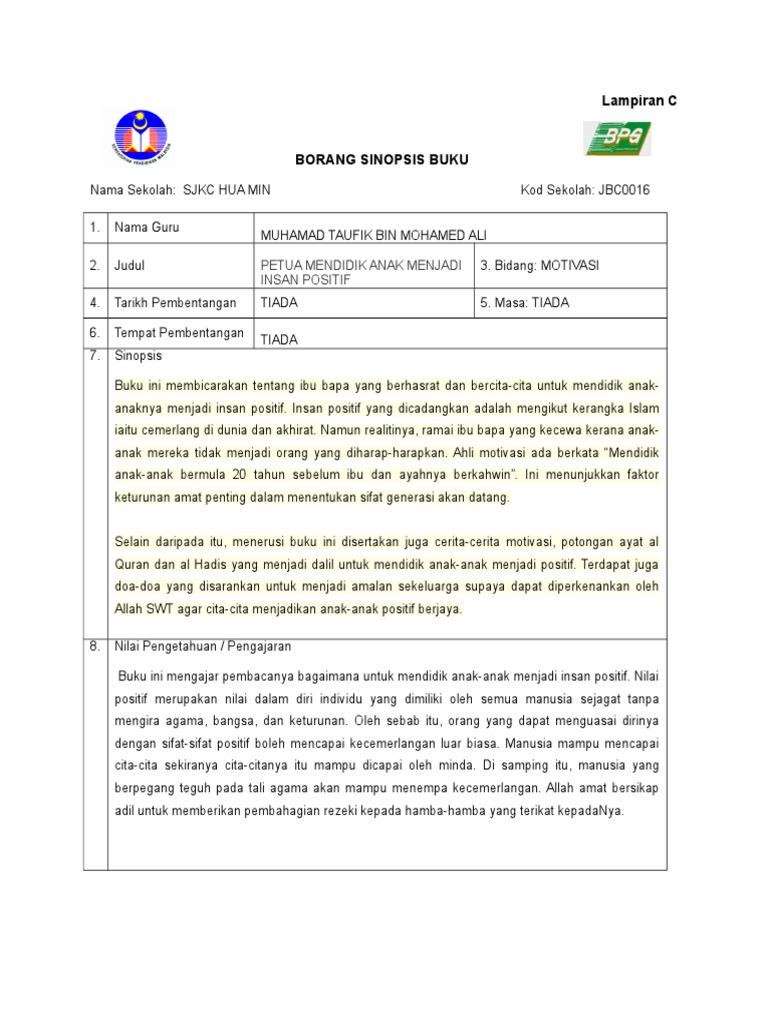 Petua Mendidik Anak Menjadi Insan Positif Doc Borang Program Pemerkasaan Budaya Amalan Membaca Buku Kalangan Guru Pelatih Ipg Kampus Temenggong Course Hero