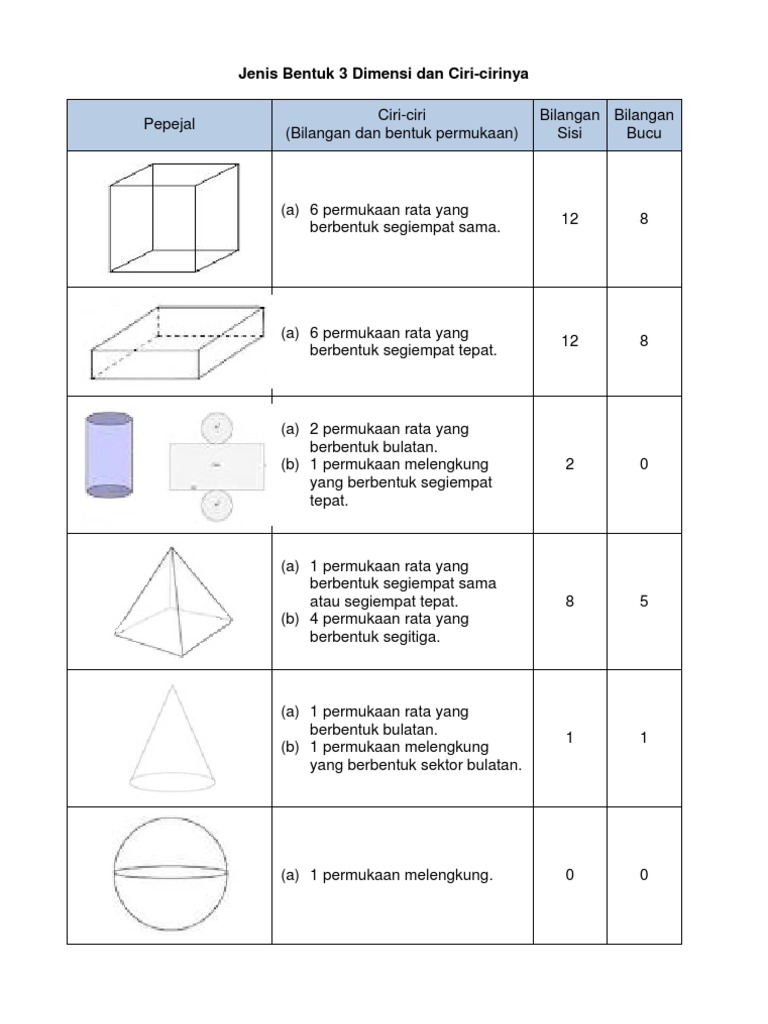 Jenis Bentuk 3 Dimensi Dan Ciri Cirinya