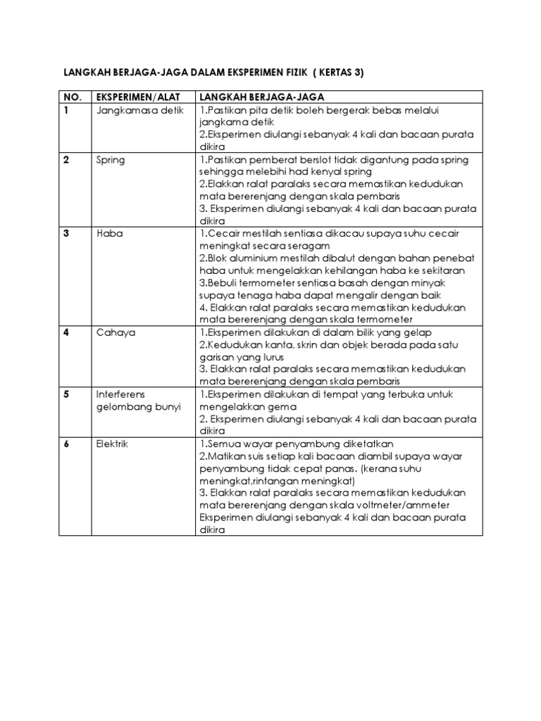 Langkah Berjaga Jaga Fizik Bm