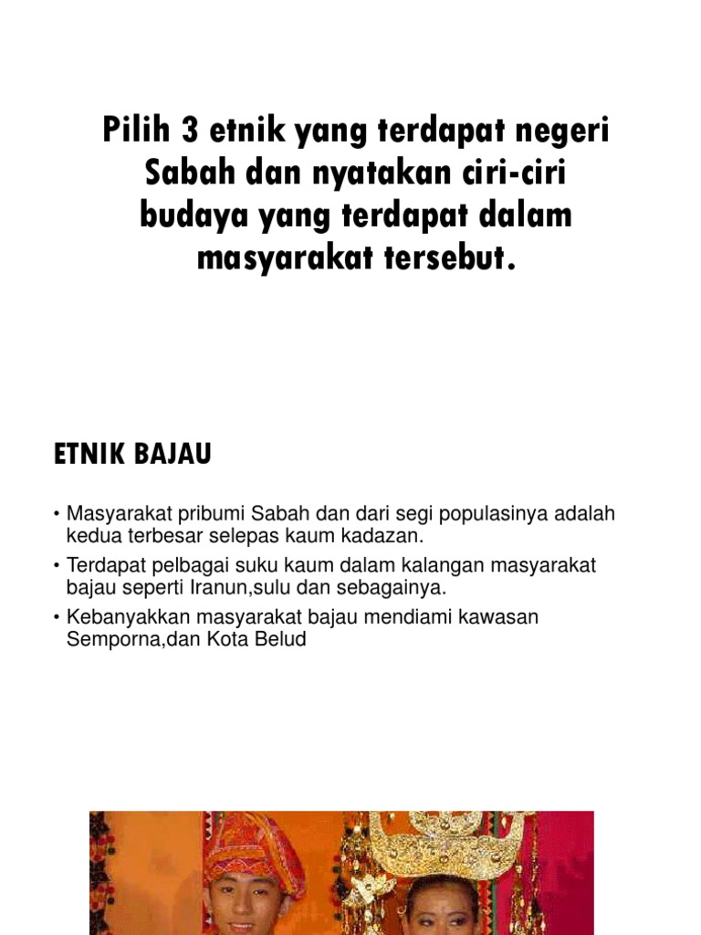Pilih 3 Etnik Yang Terdapat Negeri Sabah Dan
