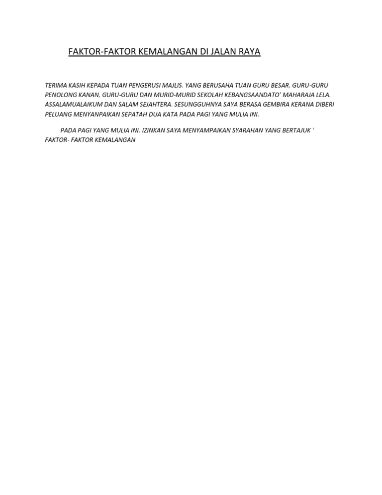Contoh Karangan Punca Kemalangan Jalan Raya Contoh Jol