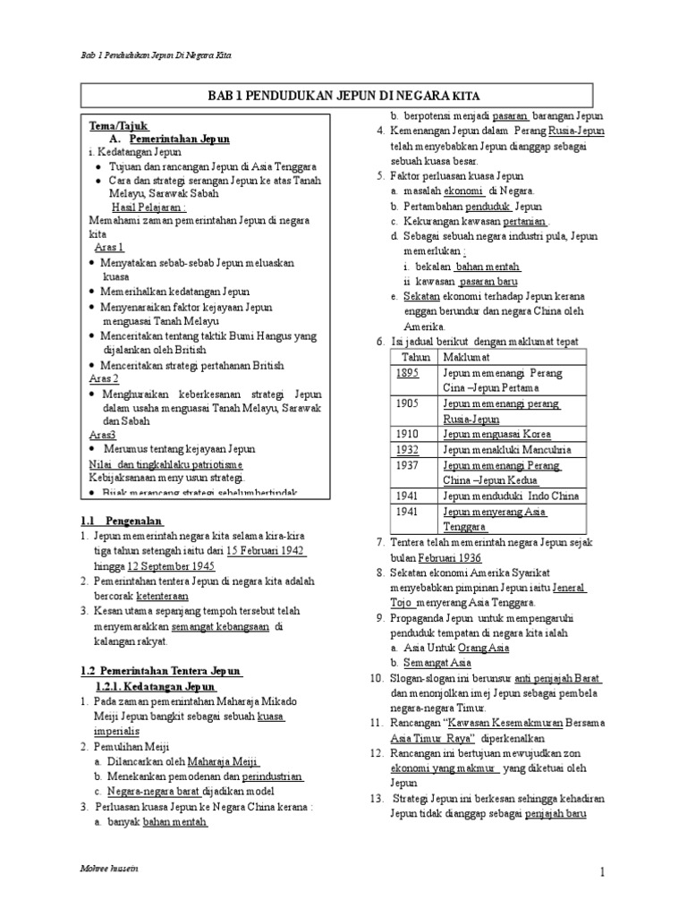 Kedatangan Jepun Tingkatan Tiga Bab 1 Pendudukan Jepun Di Negara Kita 1 1 Pemerintahan Tentera Jepun Di Tanah Melayu