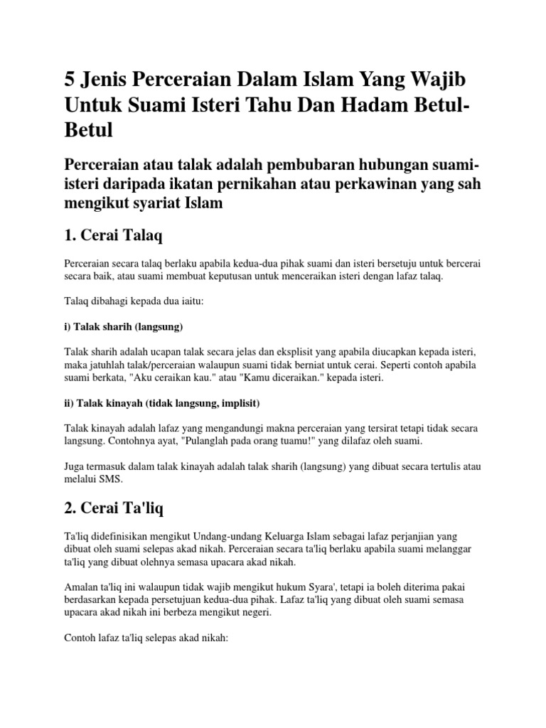 5 Jenis Perceraian Dalam Islam Yang Wajib Untuk Suami Isteri Tahu Dan Hadam Betul