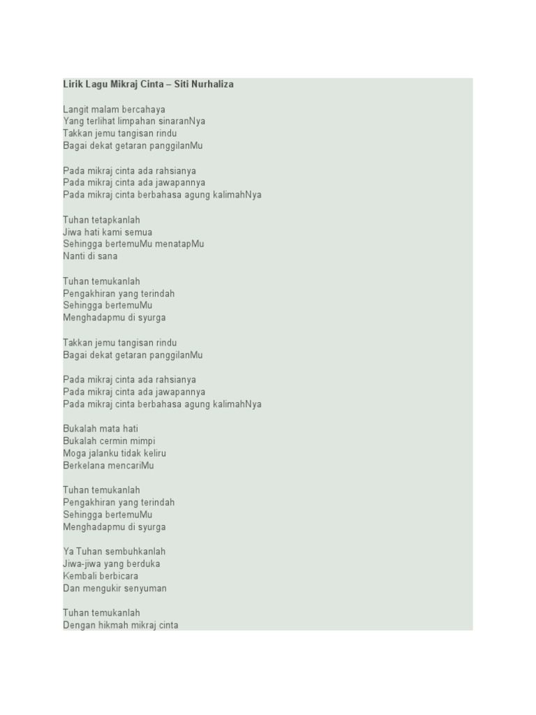 Lirik Lagu Mikraj Cinta