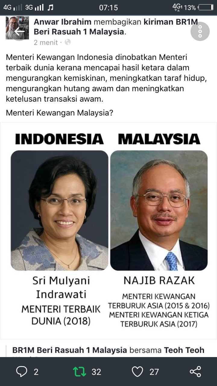 Anwar Ibrahim Menteri Kewangan Indonesia Dinobatkan Facebook