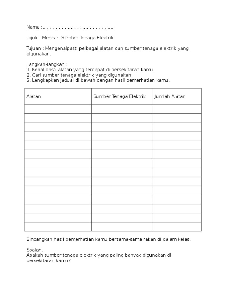 Soalan Sumber Tenaga Elektrik Tahun 5